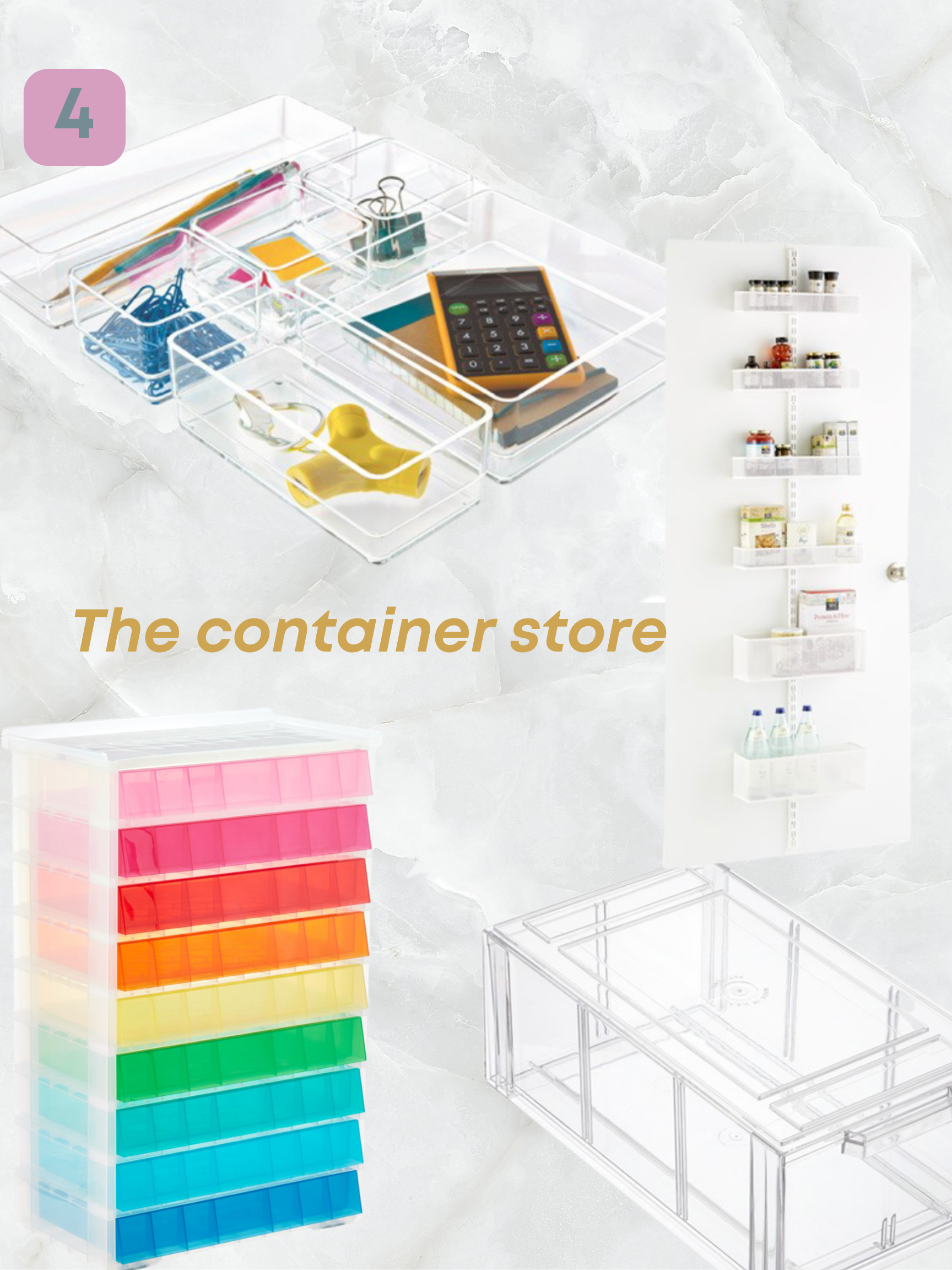 - Organize your entire home by shopping at the container store!